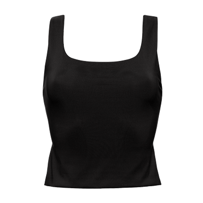 Mit seinem formenden Stoff, seinen auf dem Rücken gedrehten Bändern und dem eingearbeiteten Bustier modelliert das Tanktop Tanni jede Figur.