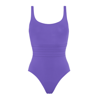 Diesen Badeanzug mit abgerundetem Ausschnitt und breiten Trägern gibt es in vielen Saisonfarben. Sein grafischer Einsatz an der Taille wirkt zugleich formend und schmeichelt jeder Figur.