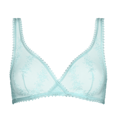 - Bügelloser Triangel-BH- Bestickter Tüll- Borten: Ausschnitt, im Rücken, unter den Armen und unter der Brust- Konstruktion mit elastischem Unterbrustband- Überkreuzung an den Körbchen- Schlanke, verstellbare Träger- Brustabnäher- Gerader Rücken- In Marokko hergestellt