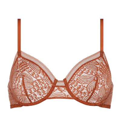 - Vollschalen-BH- Leavers-Stretchspitze- Spitzenborten: Ausschnitt, Rücken oben, unter den Armen und am Trenndreieck- Konstruktion mit Unterbrustband- Schmale verstellbare Träger- Brustabnäher- Gerader Rücken- In Frankreich hergestellt