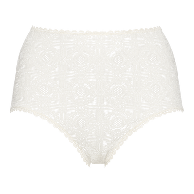 - High-waisted bikini briefs- Stretch jacquard lace- Trim: waistband and thighs- Made in Morocco