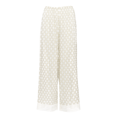 - Trousers- Silk and cotton jacquard- Trim: bottom hem- Elasticated waist- Ankle length- Made in Bulgaria
