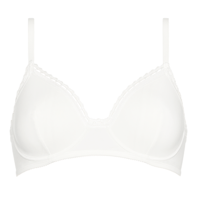 - Moulded- Silky Jersey- Trim: along the tops of the cups, the upper back, beneath the arms, and at the separator- Constructed over an underband- Lined cups- Darts on the cups- Straight-cut back- Made in Morocco