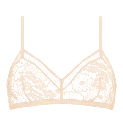 - Non-wired triangle bra- Stretchy Leavers lace- Trim: along the tops of the cups, the upper back, and beneath the arms- Constructed over an elasticated band across the chest- Darts on the cups- Straight-cut back- Side support panels- Made in Morocco