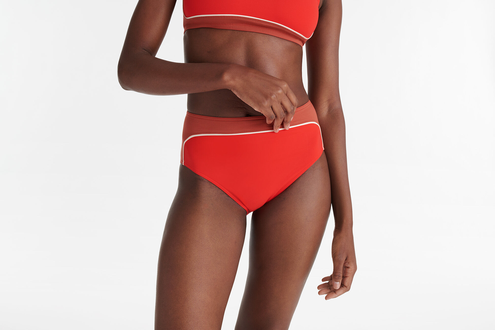 Soft Eté Indien contrasts with vibrant Ecarlate for a bold, fashionable look.