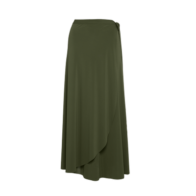 - Sarong skirt- Jersey- Sewn-on tie belt at the waist- Rounded cut at the front- Made in France