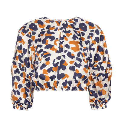 - Top- Silk twill- Round neck with buttoned front slit - Wide, elasticated elbow-length sleeves - Elasticated waist - Made in China