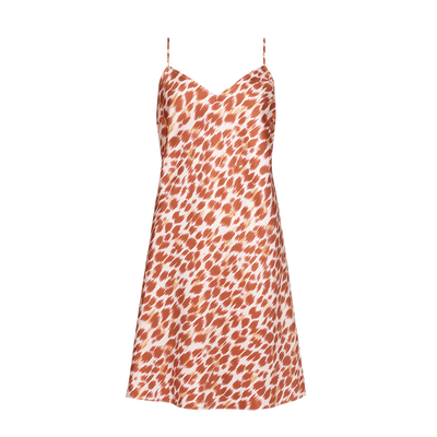 Confeccionado en sarga de seda con un un estampado que evoca el aspecto moteado de las conchas, Panthère ofrece sofisticación y feminidad. Su escote en V realza la silueta y sus finos tirantes regulables garantizan una comodidad óptima.