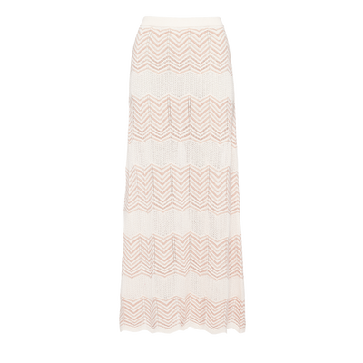 La falda larga Mer puede llevarse con el cárdigan Pompons de punto calado para un conjunto elegante y luminoso.