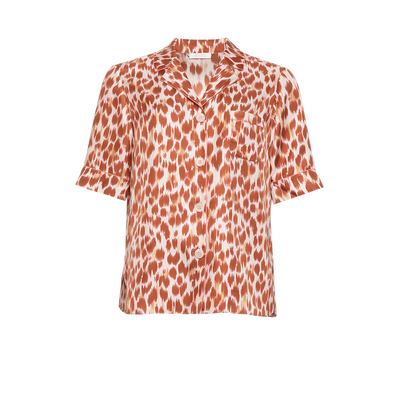 La camisa Tlemeda combina con el pantalón Jaragua con el mismo estampado para un conjunto sofisticado y femenino.