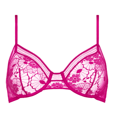 Pollen se inspira en el encaje de archivo, cuyo contorno se dibuja con distintos tipos de flores. La línea está disponible en Ultra, nuestro negro característico; Petal Rose, un rosa pálido, casi nude; y Freesia, un rosa intenso.