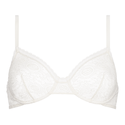 - Copa entera- Encaje Leavers stretch- Galones: escote, separador, parte superior de la espalda y sisa- Montado sobre banda- Tirantes finos ajustables- Pinzas en el pecho- Espalda recta- Hecho en Marruecos