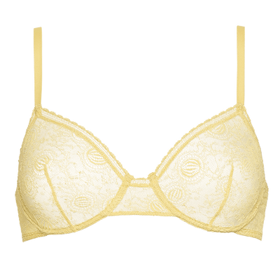 - Copa entera- Encaje Leavers stretch- Galones: escote, separador, parte superior de la espalda y sisa- Montado sobre banda- Tirantes finos ajustables- Pinzas en el pecho- Espalda recta- Hecho en Marruecos