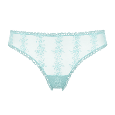 El tanga Ressac revela unos motivos florales bordados sobre el tul. Aporta un estilo discreto sobre las prendas, al mismo tiempo que garantiza libertad de movimiento.