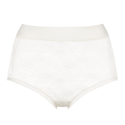 Quartz son unas bragas altas confeccionadas en encaje Leavers stretch decorado con erizos de mar y conchas. Su banda plisada en la cintura y sus galones en el contorno de las piernas aportan comodidad y estética al modelo.