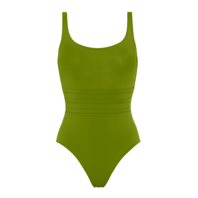 - Bañador- Escote redondeado - Bandas en el talle con efecto moldeador - Tirantes anchos- Espalda redonda- Hecho en Francia