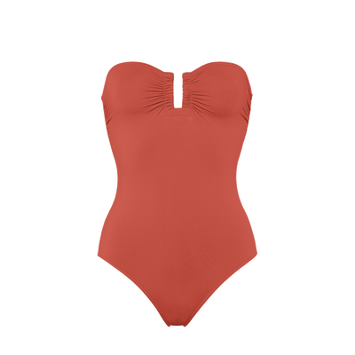 Este icónico bañador sin tirantes con banda antideslizante se distingue por las copas fruncidas y separadas por una hebilla en U. Resulta muy favorecedor para todas las morfologías.- Bañador sin tirantes- Fruncido en el centro y los laterales del pecho - Copas separadas por una hebilla en U - Banda antideslizante- Hecho en Italia