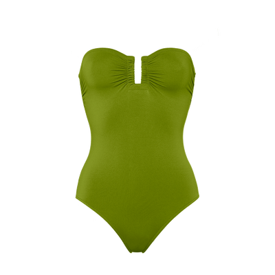 Este icónico bañador sin tirantes con banda antideslizante se distingue por las copas fruncidas y separadas por una hebilla en U. Resulta muy favorecedor para todas las morfologías.- Bañador sin tirantes- Fruncido en el centro y los laterales del pecho - Copas separadas por una hebilla en U - Banda antideslizante- Hecho en Italia