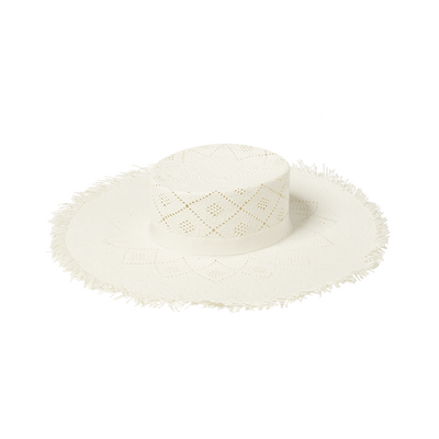 Este modelo, confeccionado en fibra de papel, se ve realzado por un motivo perforado. En color blanco, puede combinarse con todos sus looks de verano.