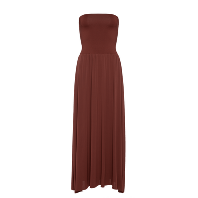 El vestido largo de corpiño Oda, elaborado en Peau Douce* y crepé de punto fluido, conjuga perfectamente comodidad y elegancia. Se puede lucir como falda larga, combinar con un traje de baño o llevar como vestido de noche.- Vestido largo de corpiño o falda larga- Longitud hasta los tobillos- Mezcla de Peau Douce* y punto- Escote y bajo sin dobladillo