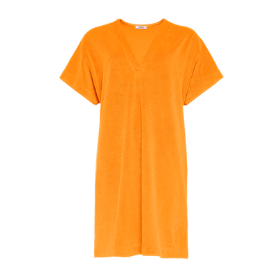 - Vestido corto- Felpa- Cuello en V- Manga corta- Aberturas en los laterales en la parte inferior del modelo- Logotipo ERES cosido tono sobre tono - Acabados forrados de algodón- Hecho en Bulgaria