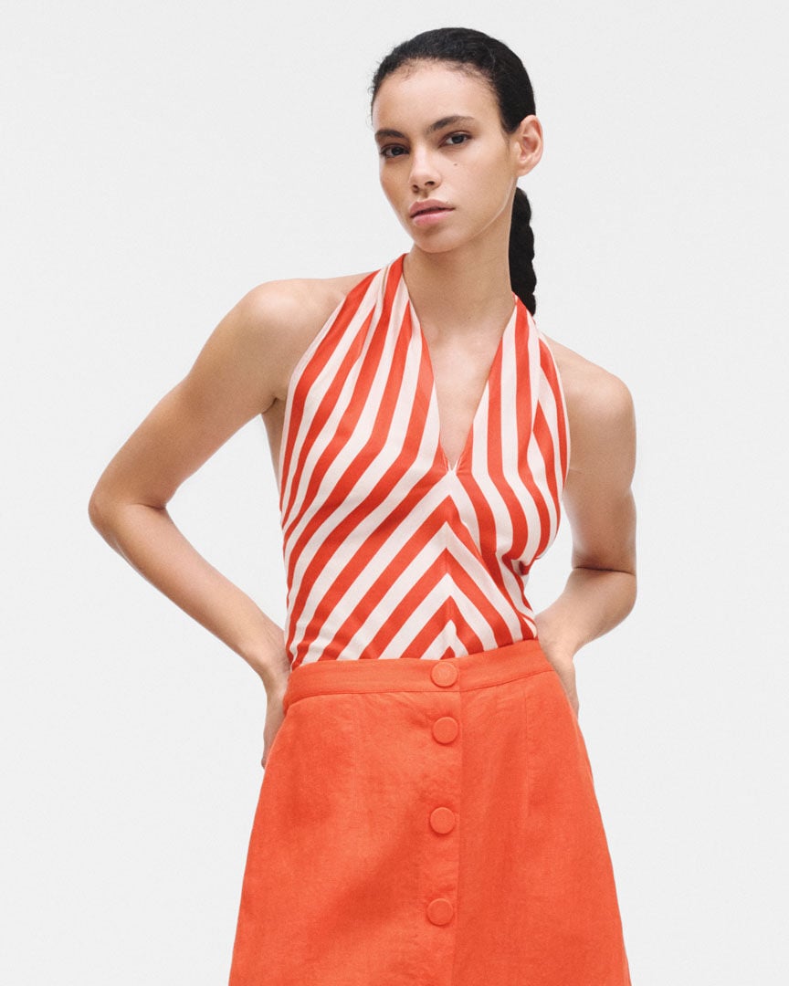Une transparence Naturelle de couches qui se superposent, se frôlent, se révèlent. La maille fine épouse la peau, le tulle bordé sème des grappes de lumière fruitées sur votre peau.