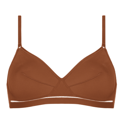 Ce triangle sans armatures combine chic et minimalisme. Réalisé dans une matière innovante à partir d'un fil polyamide recyclé, il répond aux besoins de confort et de liberté de mouvement.- Triangle sans armatures - Jersey « seconde peau » issu d'un fil polyamide recyclé - Bande rapportée ornée du point Vous-et-Moi - Pinces poitrine - Dos cheminée - Baleines sur les côtés - Fabriqué en France