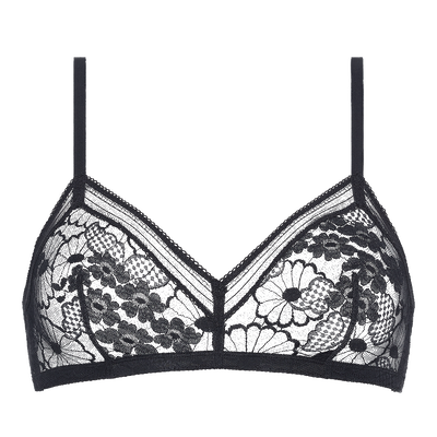 Royal est un triangle sans armatures réalisé en dentelle Leavers stretch parsemée de fleurs, inspirée d'archives. Des bords graphiques soulignent la silhouette et contrastent avec la délicatesse de la matière, tandis qu'une bande thorax élastique vient apporter du confort.- Triangle sans armatures- Dentelle Leavers stretch- Galons : décolleté, haut dos et dessous de bras- Construction sur bande thorax élastique- Pinces poitrine- Dos droit- Baleine côtés- Fabriqué au Maroc