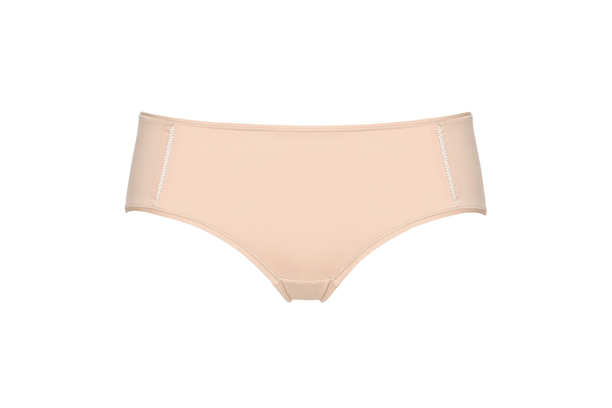 Un beige subtilement rosé, rappelant la couleur du fard sur les joues.
