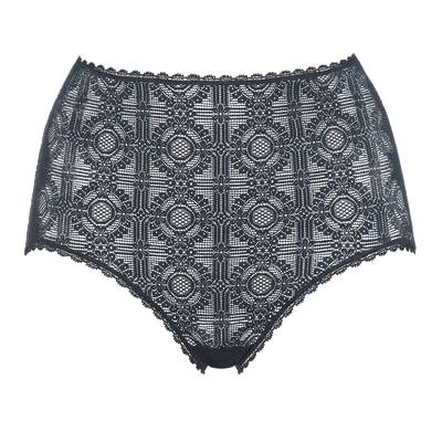 Parcourue de motifs géométriques créant un jeu d'ombres et de lumières, la dentelle jacquard stretch de la culotte taille haute Ganse dévoile une allure audacieuse et féminine. Sa coupe et ses galons autour des cuisses mettent en valeur la taille et galbent la silhouette.