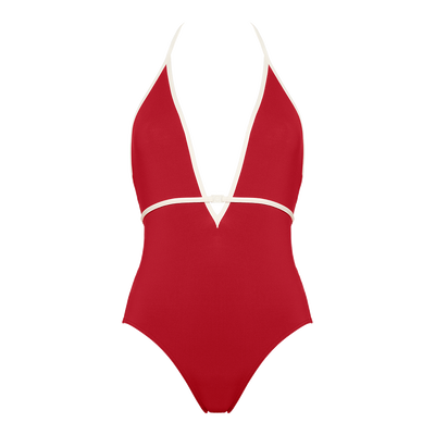 Alliant féminité et maintien, ce une-pièce au décolleté V se porte à la plage ou en version body sous un pantalon ou une jupe. Associez-le avec les pièces du thème L'Intemporel ou le paréo Cabine.