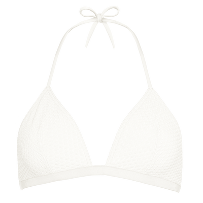 Confectionné en jacquard, le triangle à pinces Extra est sublimé par une bande rapportée sous-poitrine en gros grain pour une allure inspirée des années 70.