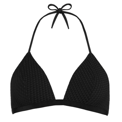 Confectionné en jacquard, le triangle à pinces Extra est sublimé par une bande rapportée sous-poitrine en gros grain pour une allure inspirée des années 70.