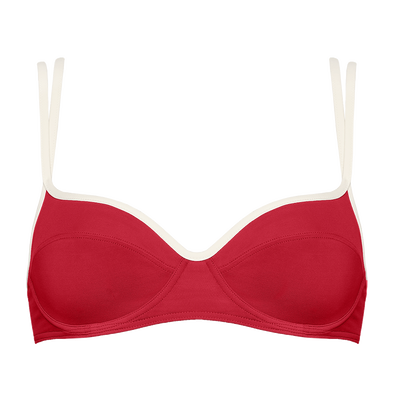 Ce haut de maillot de bain, aux allures architecturales, séduit par ses fines bretelles croisées à l'avant et droites au dos. Orné d'un colletage subtil, il offre des courbes féminines et sensuelles.
