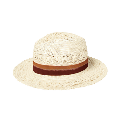 - Chapeau- Mélange PA/PES- Forme Léone- Bande gros grain dégradé en tour de tête- Bande tour de tête réalisée artisanalement (chaque pièce est unique)- Effet double gros grain- Tailles : S : 55 cm, M : 57 cm, L : 59 cm- Fabriqué en Italie