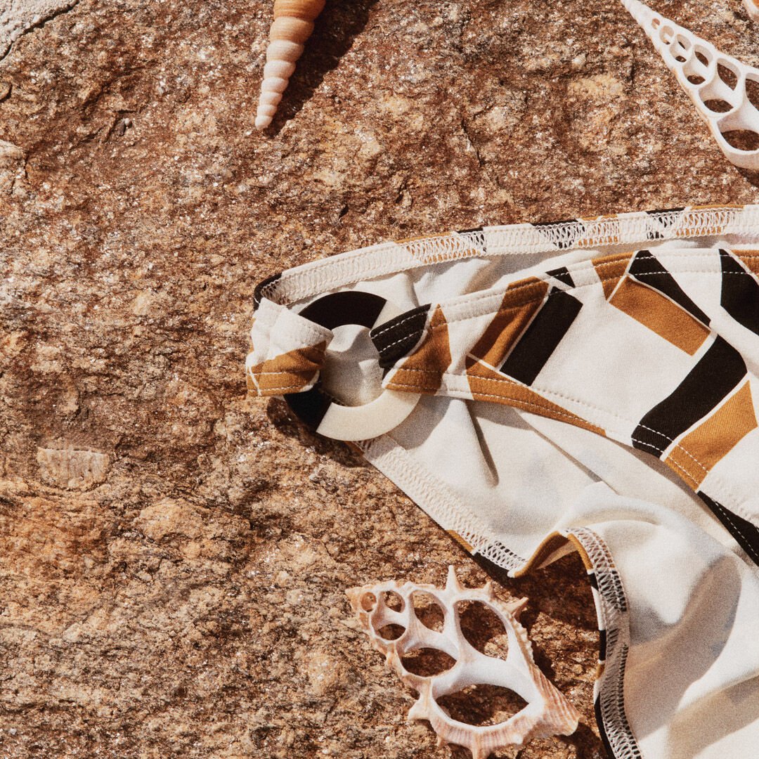 L’imprimé Swim est ponctué par des touches de Lilas, mais aussi d’ambré pour le côté jeune et estival.
