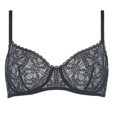 Cluny è un reggiseno contenitivo realizzato in un pizzo jacquard stretch ornato da motivi geometrici. La sua struttura con fascia sottoseno e il dorso dritto garantiscono sostegno e comfort, mentre i galloni in pizzo ne accentuano la raffinatezza.