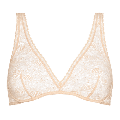 Il reggiseno a triangolo con ferretti Rubellite è realizzato in pizzo Leavers stretch con motivi di conchiglie che conferiscono uno stile elegante e femminile. Disponibile fino alla coppa E, unisce il comfort di un reggiseno a triangolo e il sostegno di un reggiseno contenitivo.