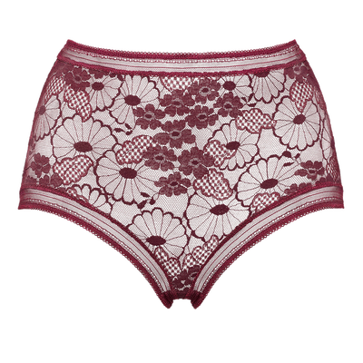 Lo slip a vita alta Acacia può essere abbinato ai diversi reggiseni nello stesso tema, come il reggiseno a triangolo senza armatura Royal in tutte le sue declinazioni cromatiche o il reggiseno a triangolo con armatura Millefleurs nei colori Ultra e Freesia.