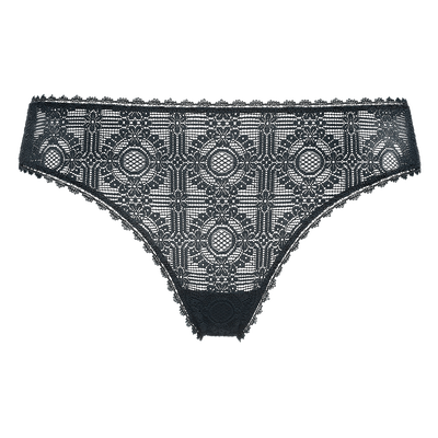Il tanga Grace rivela dei motivi geometrici su un pizzo jacquard stretch ornato di galloni delicati e sofisticati. Firma uno stile sobrio sotto i vestiti al contempo garantendo libertà di movimento.
