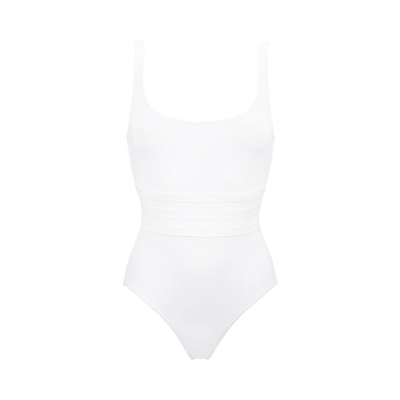 Questo costume intero olimpionico, declinato nei colori della stagione, presenta spalline larghe e scollatura arrotondata. L’applicazione in vita, grafica e pratica, definisce la silhouette e si adatta a tutte le corporature.