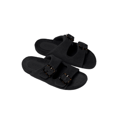 - Ciabatte- Spugna- Due cinturini regolabili con una fibbia tartarugata e occhielli tono su tono - Logo in pelle sulla suola interna- Suola in plastica adatta all’uso beachwear- Prodotto realizzato in Spagna