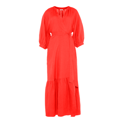 L’abito lungo in lino Joie si colora della tonalità Flashy, vivace e moderna. Il capo si indossa incrociato sul davanti, chiuso da una cintura amovibile in vita. La scollatura cache-cœur ne rivela la femminilità, mentre le maniche lunghe raglan aggiungono un tocco di ricercatezza. Dei romantici volant sul fondo del modello completano questo capo estivo.