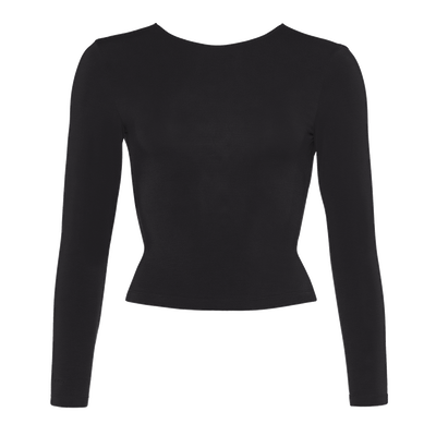 - Top- Round neckline- Long sleeves- Crossover back- ERES logo embroidered on the right wrist- Made in Croatia
