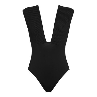 Made from jacquard and Peau Douce, the Glamorous one-piece offers a daring brand of sophistication. Wide shoulder straps frame its plunging neckline for a couture twist.