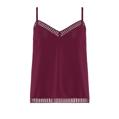 - Camisola- Punto- Galones: en escote, sisa, parte superior de la espalda y bajo del modelo- Tirantes finos ajustables- Escote en V- Pinzas en el pecho- Espalda recta- Hecha en Marruecos