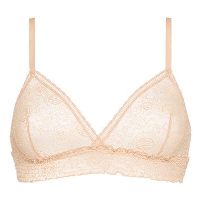El sujetador triangular sin aros Jaspe proporciona una comodidad sin igual. Su encaje Leavers stretch, decorado con delicados motivos de conchas y erizos de mar, se ve realzado por fruncidos bajo el pecho que aumentan su elegancia.