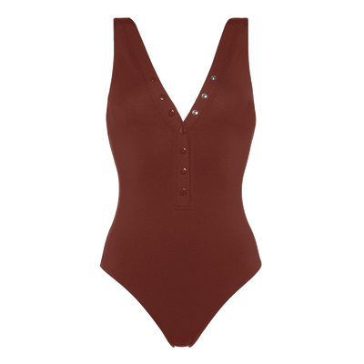 - Bañador- Tirantes anchos- Banda en el escote con botones a presión funcionales en la parte delantera- Espalda redonda profunda - Hecho en Francia