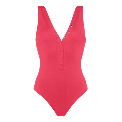 - Bañador- Tirantes anchos- Banda en el escote con botones a presión funcionales en la parte delantera- Espalda redonda profunda - Hecho en Francia