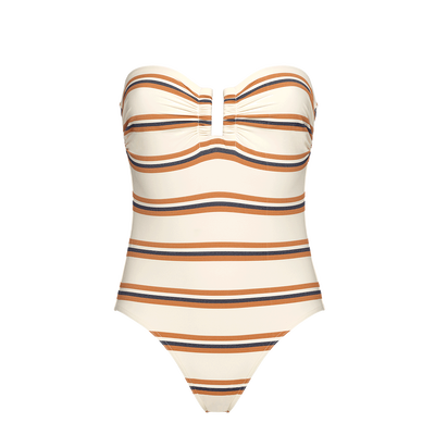 Con el objetivo de equilibrar su conjunto, le aconsejamos combinar el bañador sin tirantes Amiral con prendas de punto o de lino de la línea L'Intemporel con la variante Sable fin.